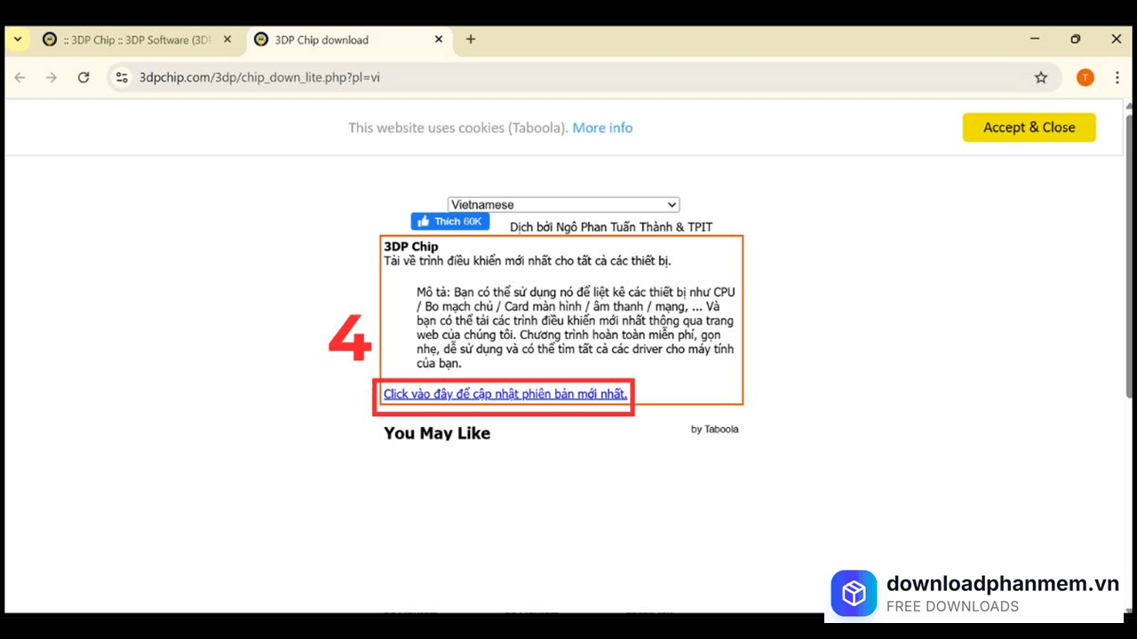 - Bước 2: Truy cập nguồn tải chính thức: Nhấp chuột trực tiếp vào tên thiết bị đó. Trình duyệt web sẽ tự động mở ra trang tải Driver của 3DP Chip. Tại đây, bạn chọn phiên bản mới nhất (thường nằm ở dòng đầu tiên).