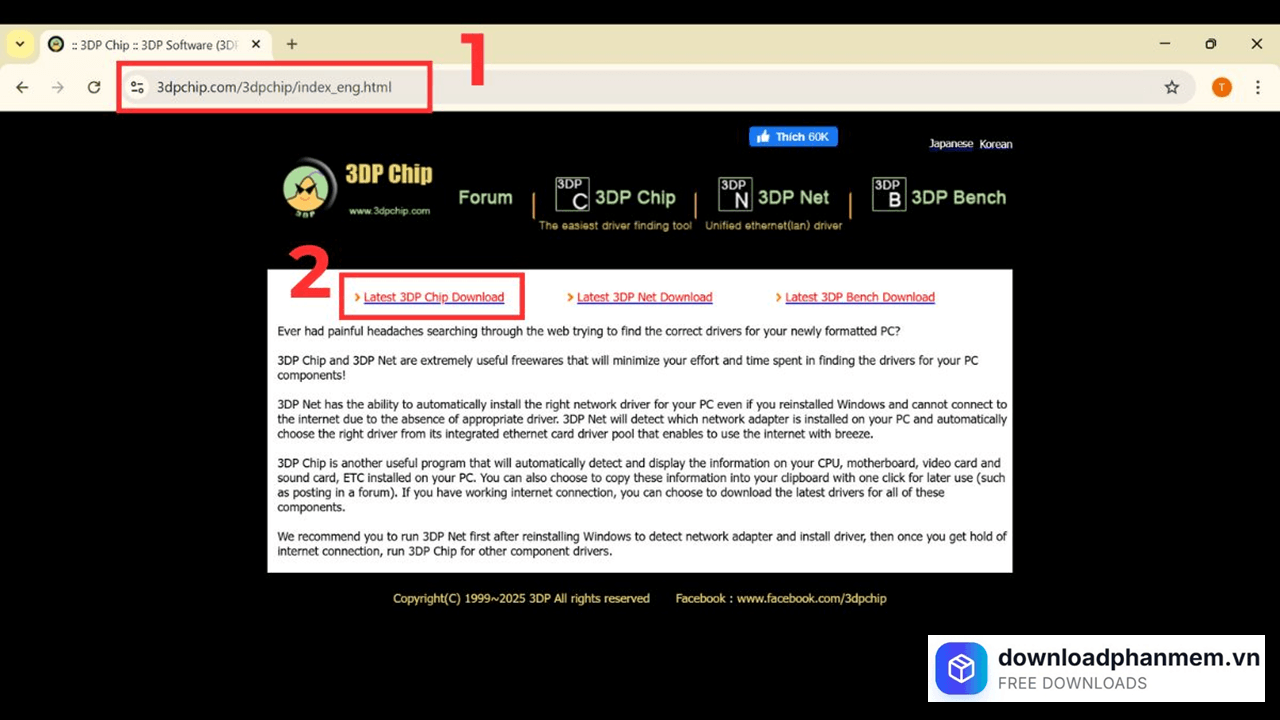 - Bước 1: Truy cập và tải bộ cài từ nguồn chính thống do downloadphanmem.vn cung cấp. Tại giao diện trang chủ, hãy quan sát cột bên trái và nhấp vào dòng chữ "Latest 3DP Chip Download". Đây là phiên bản mới nhất, đã được tối ưu hóa cho các dòng phần cứng hiện đại.