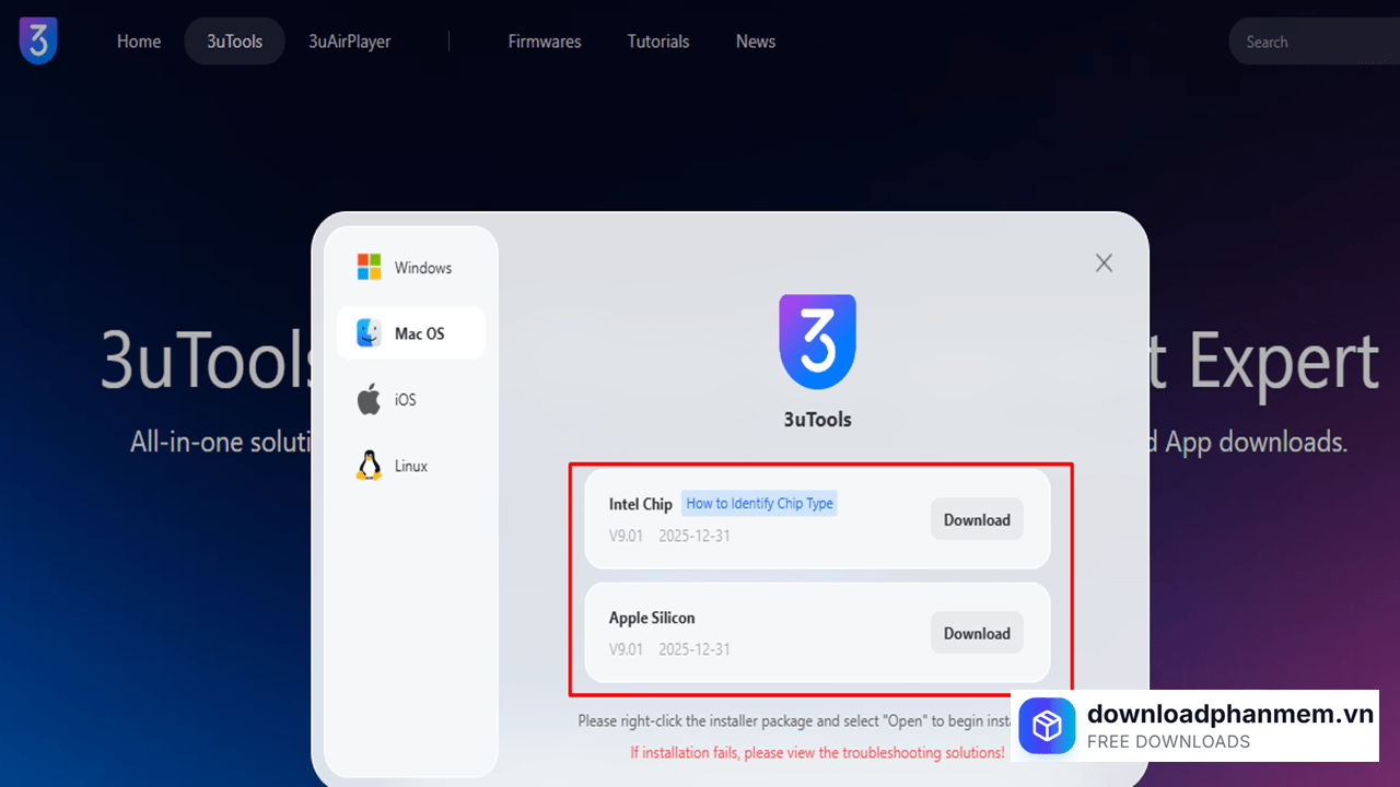 - Nguồn tải: Tuyệt đối chỉ tải từ trang chủ 3u.com. Năm 2026, có rất nhiều bản "3uTools cho Mac" giả mạo chứa mã độc đánh cắp dữ liệu người dùng được quảng cáo trên mạng.