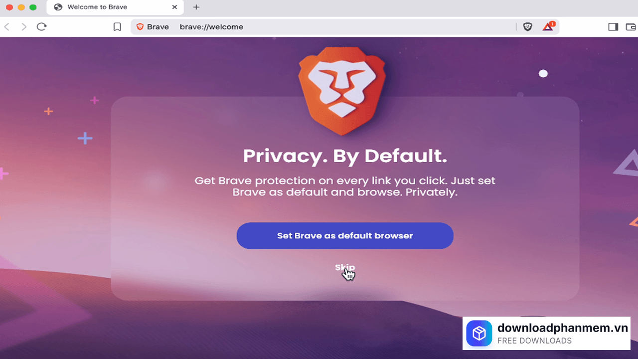 - Bước 5:Tại màn hình hiện ra Đặt làm trình duyệt mặc định nếu bạn muốn bảo vệ quyền riêng tư tối đa trên toàn hệ thống. Nhấn Skip để bỏ qua