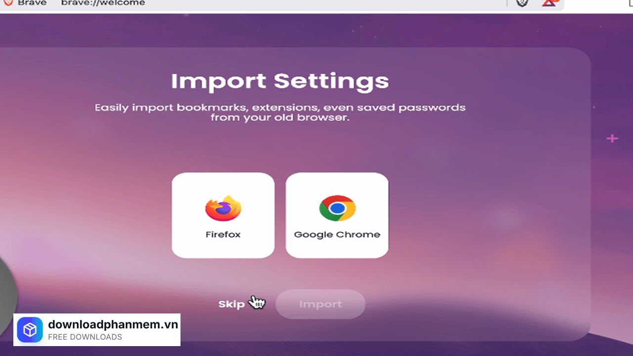 - Bước 6: Chọn trình duyệt cũ bạn đang dùng (ví dụ: Google Chrome) và nhấn Import mọi thói quen lướt web của bạn sẽ được giữ nguyên vẹn. Hoặc nhấn Skip để bỏ qua