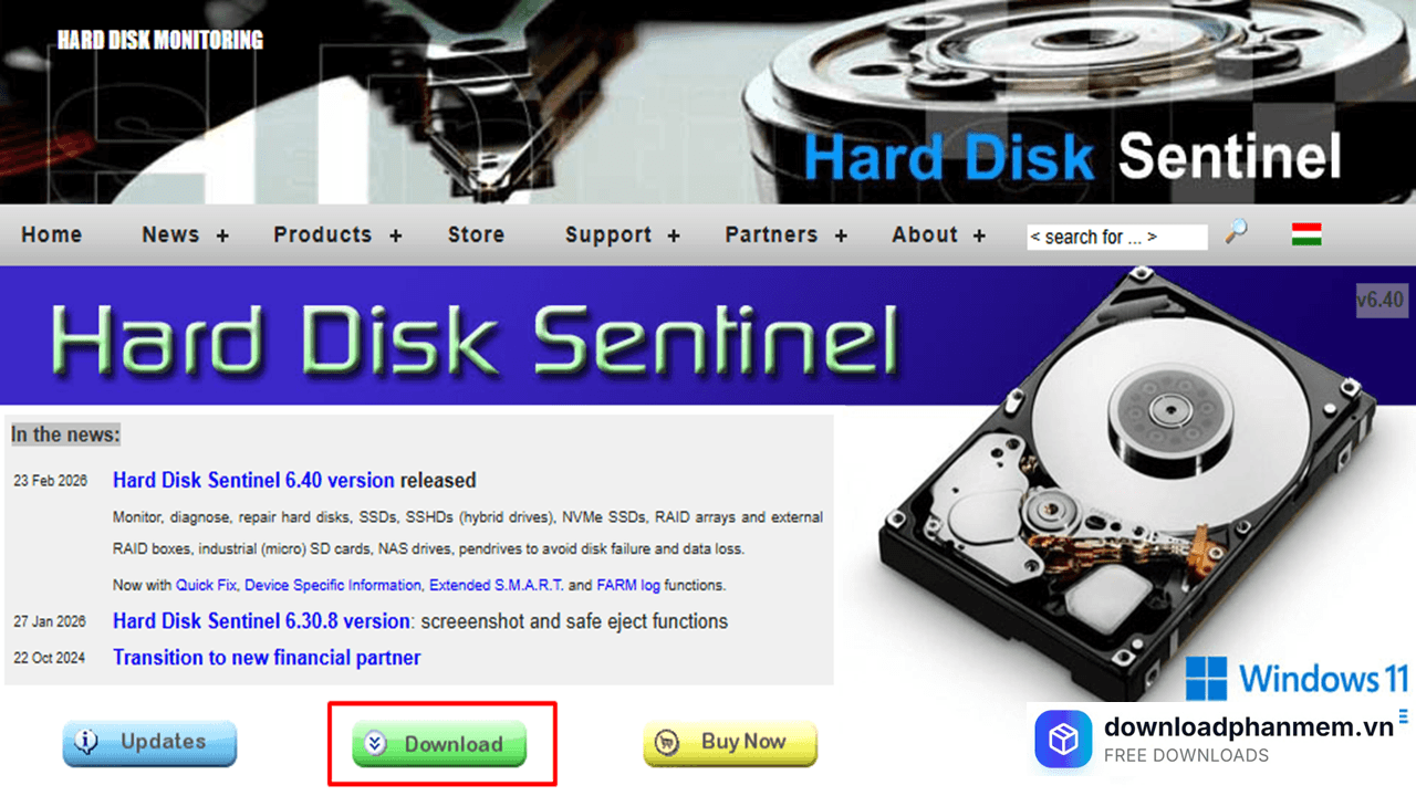 - Bước 1: Truy cập vào liên kết tải Hard Disk Sentinel, chọn phiên bản phù hợp (Pro hoặc Standard) và tải bộ cài về máy tính của bạn.