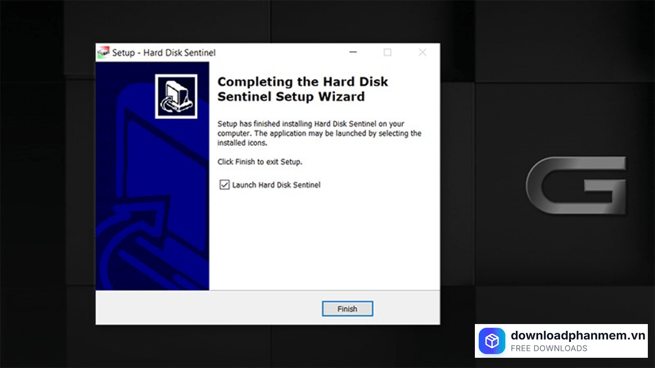 - Bước 10: Cuối cùng, nhấn Finish để kết thúc. Nếu bạn để tích chọn "Launch Hard Disk Sentinel", phần mềm sẽ tự động mở lên và hiển thị ngay tình trạng sức khỏe ổ cứng của bạn.