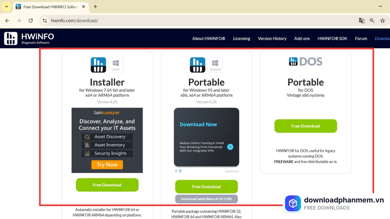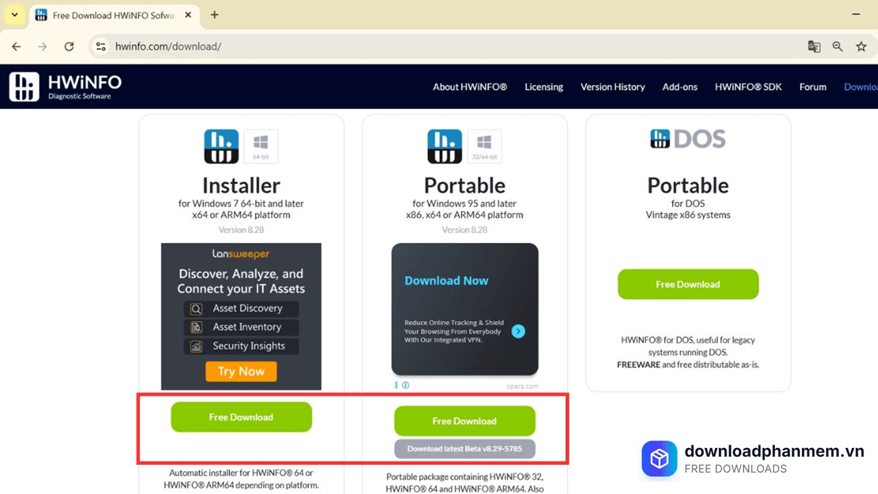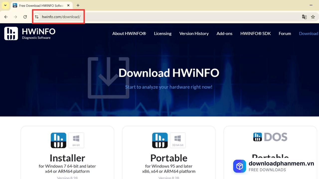 - Bước 1: Truy cập vào trang web chính thức của nhà phát triển tại địa chỉ: hwinfo.com/download/