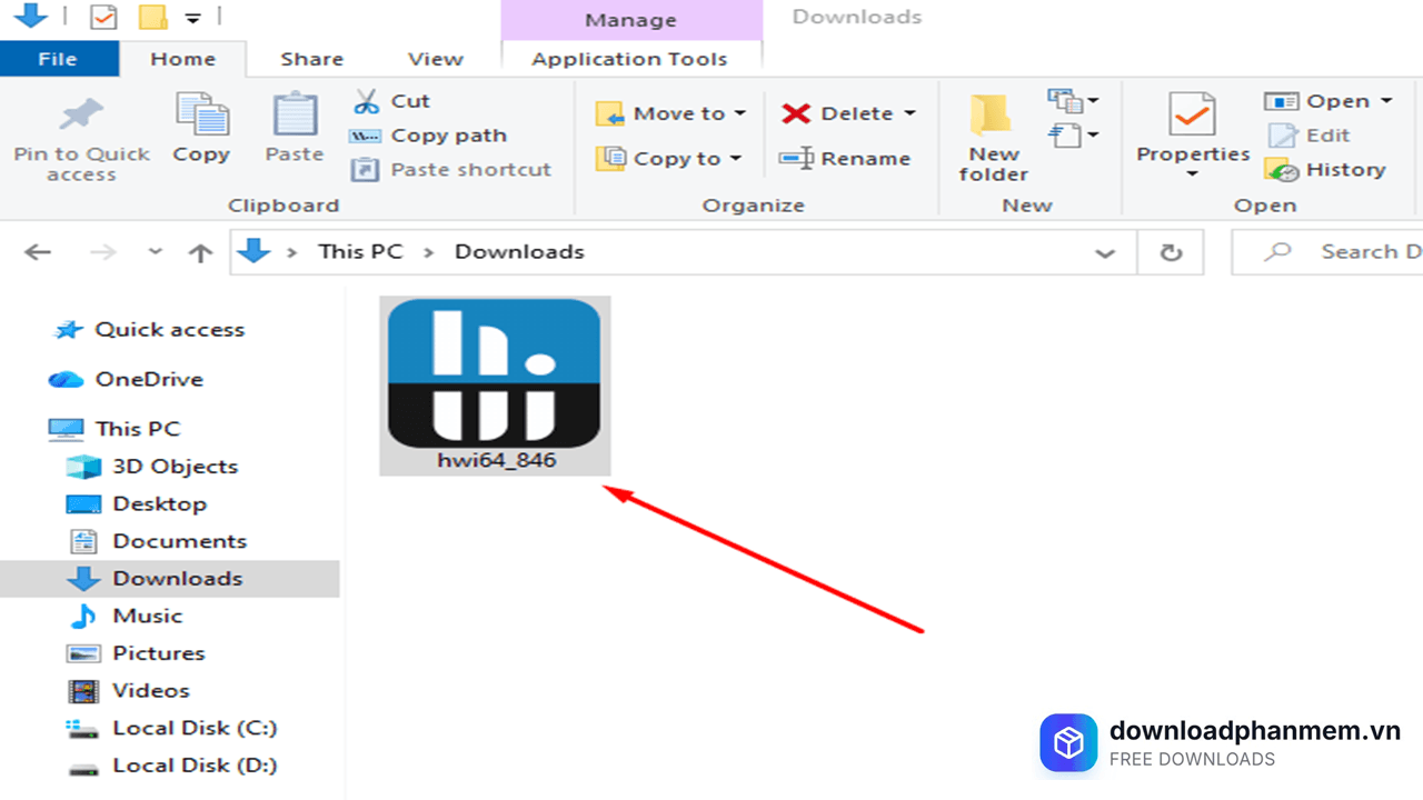 - Bước 4: Sau khi tải xong, hãy truy cập thư mục Downloads trên máy tính và click đúp chuột vào tệp tin có tên hwi64_xxx