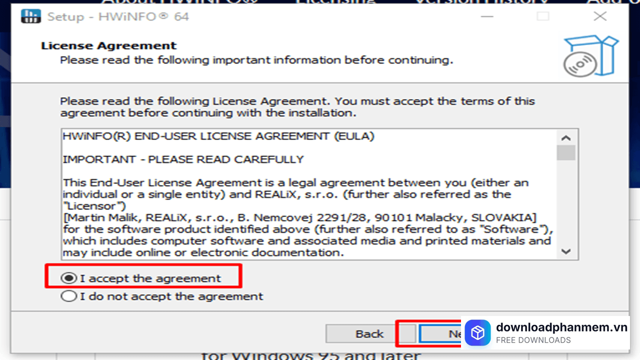 - Bước 7: Đọc kỹ điều khoản sử dụng, sau đó tích chọn vào ô "I accept the agreement" và nhấn Next