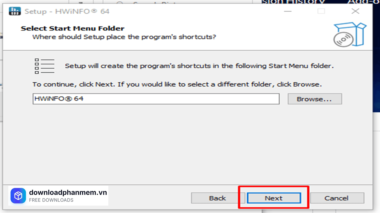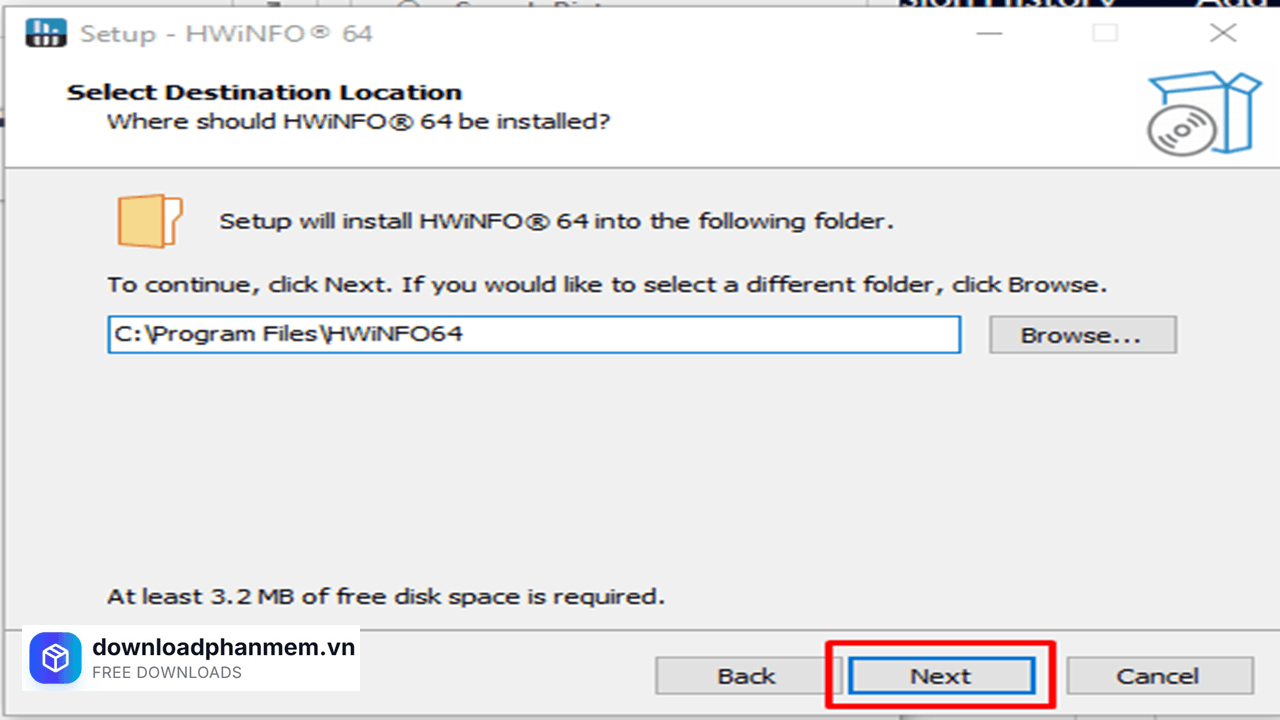 - Bước 8: Chọn vị trí lưu trữ phần mềm. Mặc định sẽ là C:\Program Files\HWiNFO64. Bạn có thể thay đổi hoặc để mặc định rồi nhấn Next (Slide 8).