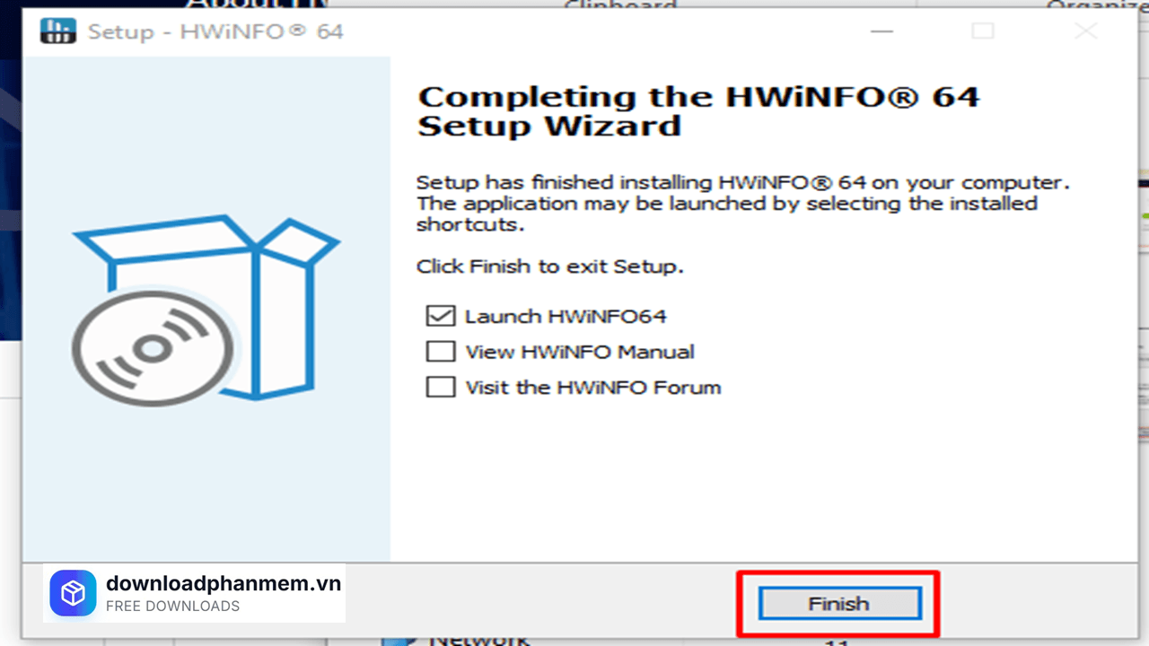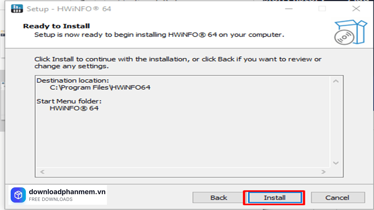 - Bước 10: Cuối cùng, kiểm tra lại các thiết lập và nhấn Install. Quá trình cài đặt sẽ diễn ra trong vài giây và bạn đã sẵn sàng sử dụng HWiNFO để kiểm soát toàn bộ phần cứng của mình. Sau khi chờ trong giây lát vui lòng nhấn Finish hoàn tất quá trình cài đặt