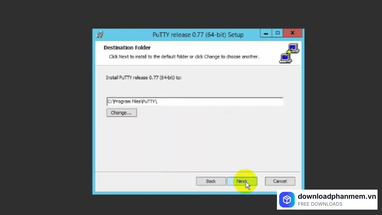 - Bước 4: Hệ thống sẽ mặc định cài đặt PuTTY vào thư mục C:\Program Files\PuTTY\.