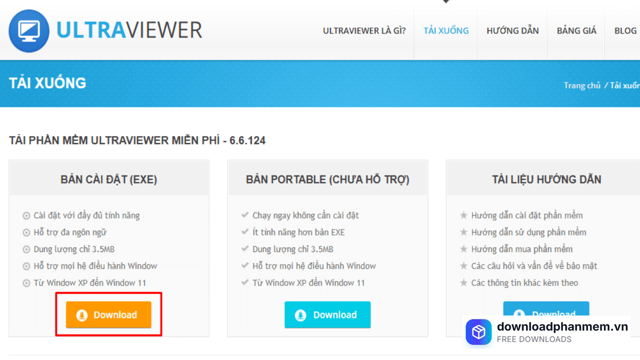 - Bước 1: Đầu tiên, bạn truy cập vào website chính thức của UltraViewer. Tại mục TẢI XUỐNG, bạn sẽ thấy 2 lựa chọn: