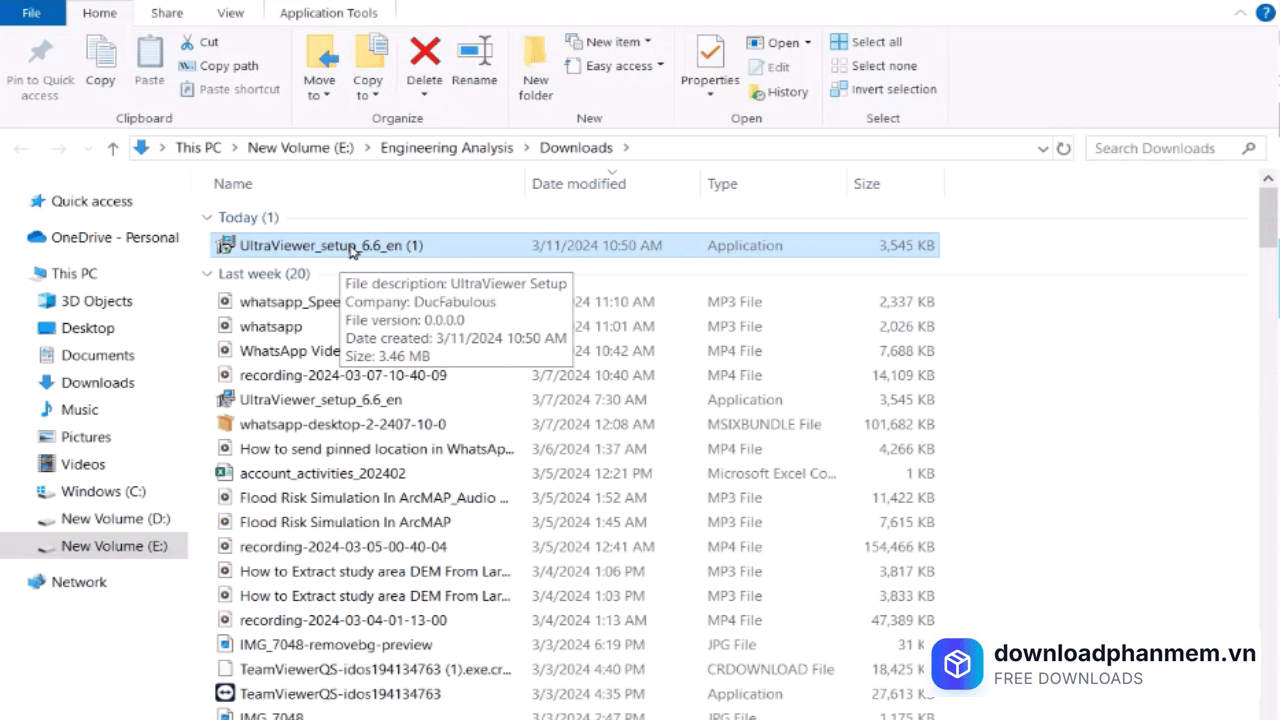 - Bước 2: Sau khi tải về thành công, bạn mở thư mục chứa file (thường là thư mục Downloads). Tìm file có tên UltraViewer_setup_6.6_en.exe.