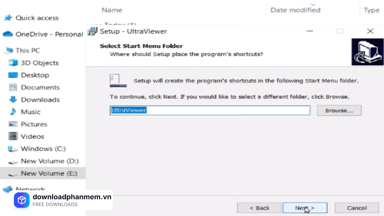 - Bước 3: Hệ thống sẽ hỏi bạn muốn đặt lối tắt của chương trình ở đâu trong Start Menu. Bạn để mặc định là "UltraViewer" và nhấn Next.