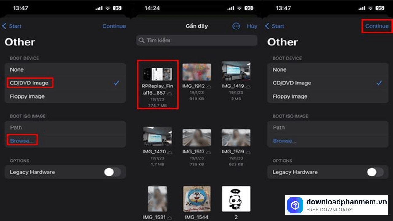 Chọn tệp hệ điều hành và nhấn Continue