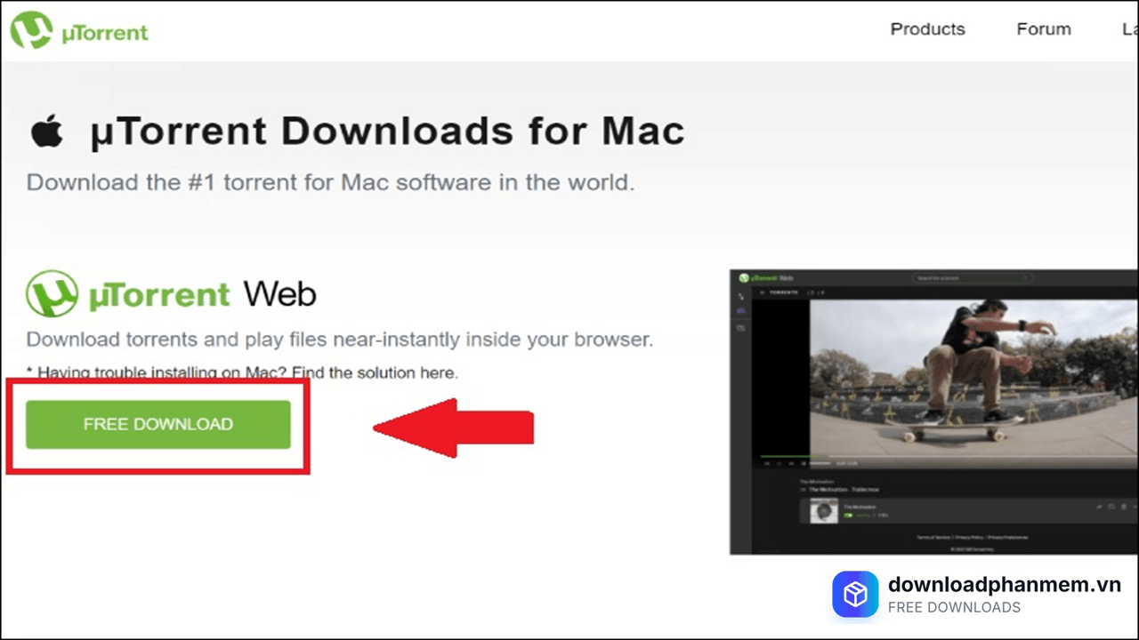 - Bước 1: Truy cập vào trang chủ uTorrent dành cho Mac. Nhấn vào nút Free Download. Hệ thống sẽ tự động tải về tệp tin có định dạng .dmg (hoặc .pkg) định dạng cài đặt tiêu chuẩn dành riêng cho máy Mac.
