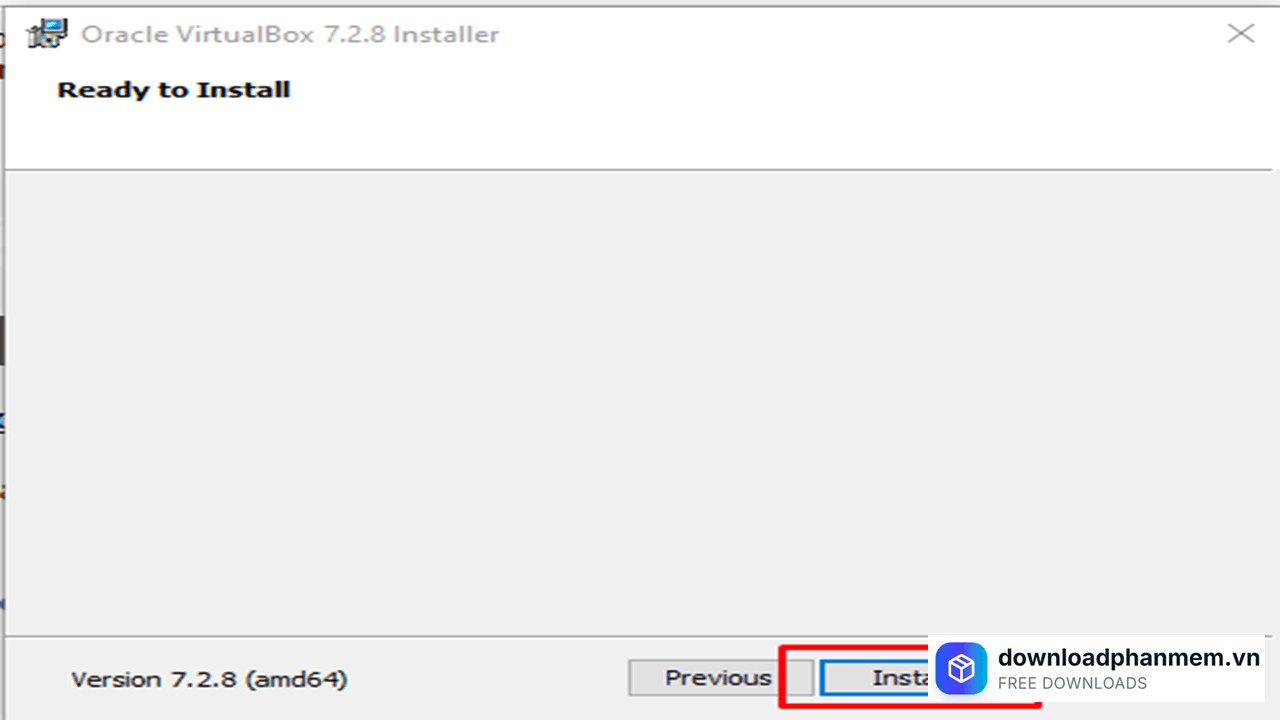 - Bước 6: Mọi thứ đã sẵn sàng, bạn nhấn nút Install để lệnh cho máy tính bắt đầu sao chép dữ liệu và thiết lập các tệp tin hệ thống cho VirtualBox.