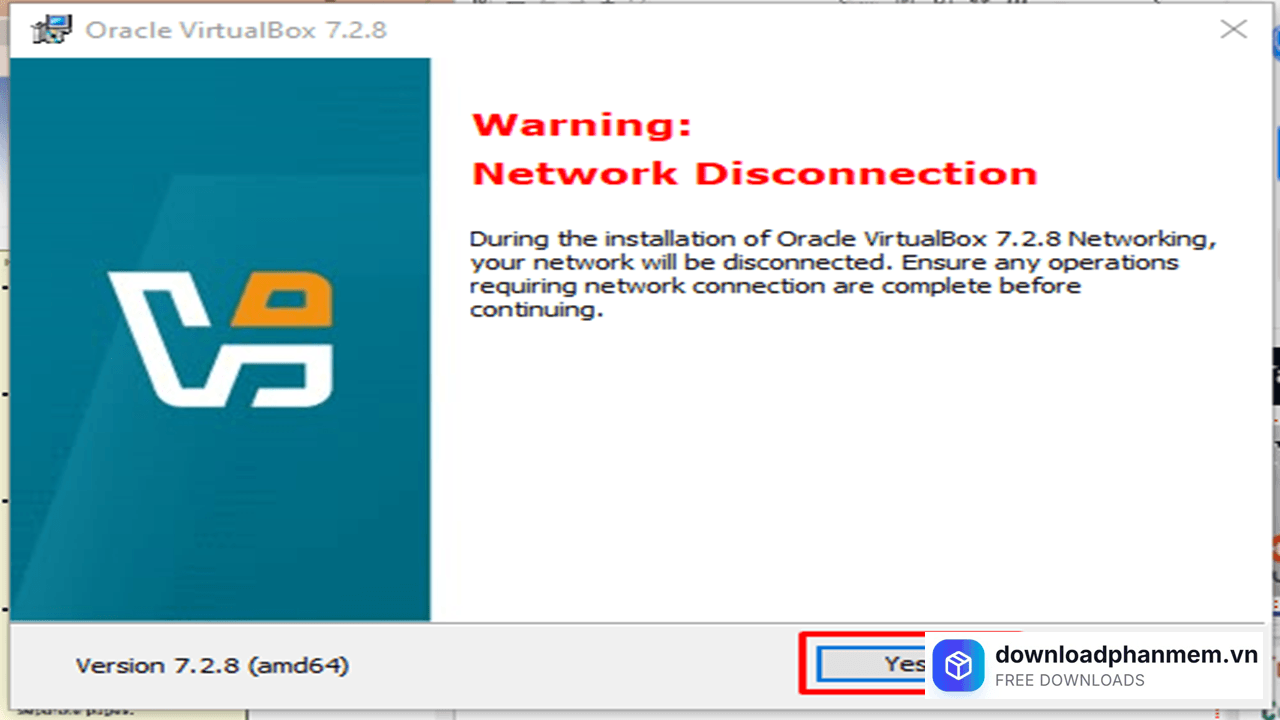 - Bước 5: Một thông báo cảnh báo sẽ hiện lên cho biết kết nối mạng của bạn có thể bị ngắt tạm thời để cài đặt trình điều khiển mạng ảo. Hãy nhấn Yes để đồng ý và tiếp tục.